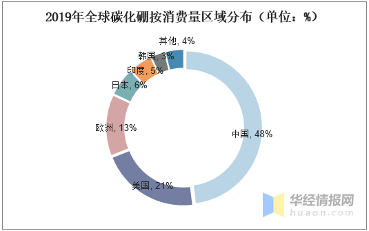 2019年全球碳化硼按消費量區(qū)域分布(單位:%)
