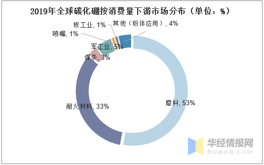 2019年全球碳化硼按消費量下游市場分布(單位:%)