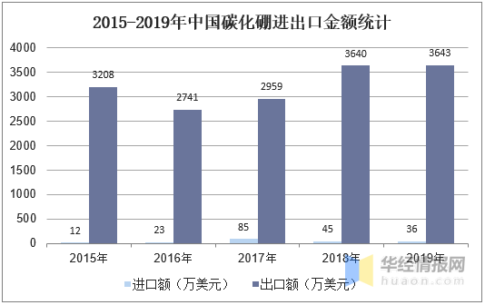 2015-2019年中國碳化硼進出口金額統(tǒng)計